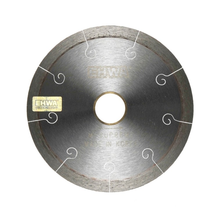 Сплошные алмазные диски предназначены для максимально чистого реза плитки и других изделий из керамики, гранита, керамогранита, камня, стекла и т.п. Как правило, изделия из этих материалов находятся в интерьере на виду, поэтому кромка после реза должна быть визуально приятной, ровной, без сколов. По этой причине сплошные алмазные диски не имеют сегментов, повышающих скорость реза, алмазный слой равномерно наносится по всей длине режущей поверхности. Сплошные диски могут быть для сухого или мокрого реза. Сухие диски чаще всего имеют диаметр 115-150мм, используются при работе болгаркой. Мокрые диски более крупные, 180-400 мм в диаметре и используются на плиткорезных станках с обязательной подачей воды в место реза для охлаждения алмазоносного слоя. Необходимо уточнить, что на плиткорезных станках последних поколений появилась возможность устанавливать мокрые диски малых диаметров 125-150мм с высоким числом оборотов, что в разы повысило качество реза керамической плитки.