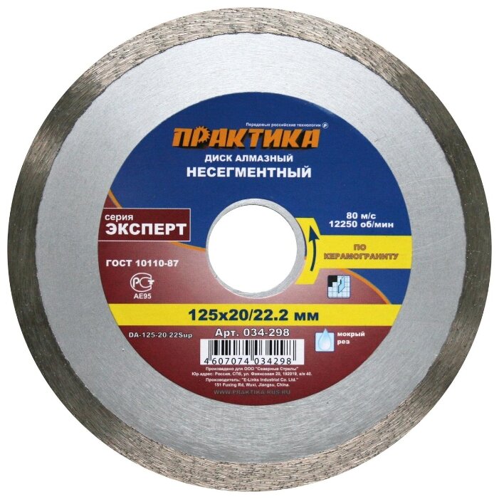 Отрезной алмазный диск по керамической плитке/керамогра.