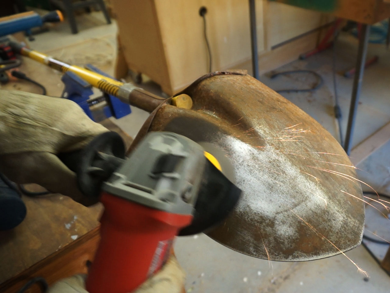 А поскольку такие инструменты, как настольные шлифовальные и ленточные шлифовальные машины, очень мощные, важно крепко держать топор. Прежде чем приступить к заточке, убедитесь, что топор надежно у вас в руке. Точно так же перед включением убедитесь, что электрическая точилка надежно закреплена на поверхности.