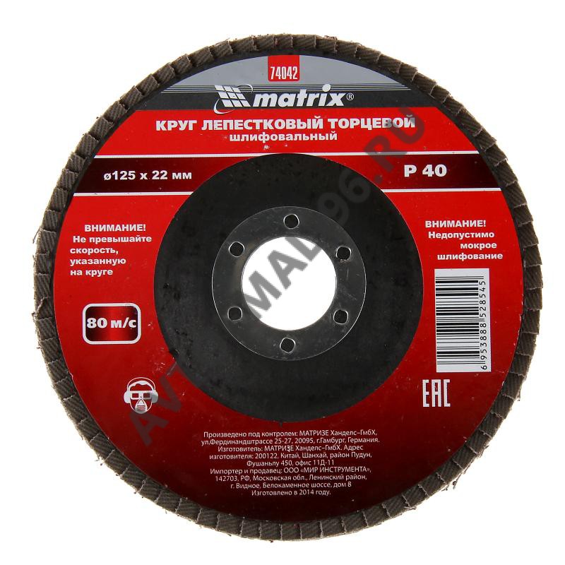 Круг MESSER шлифовальный лепестковый торцевой плоский (электрокорунд) А80(П) 125х22 для болгарки по дереву