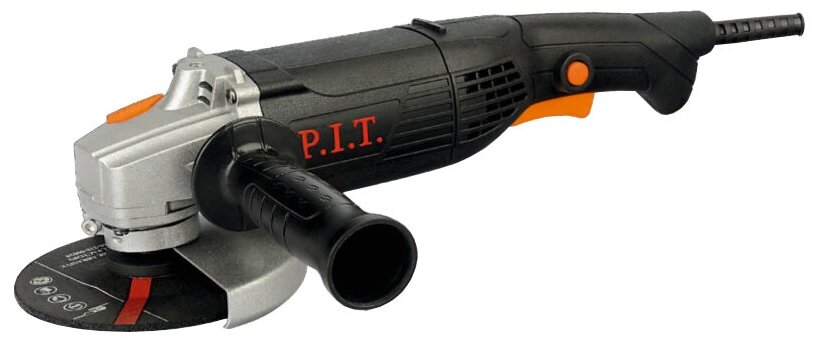 Корпус малышки выполнен из пластика, рукоять — с антискользящими вставками из резины. Держать комфортно, лежит в руке приятно. Сам пластик на вид и ощупь неплохой, местами есть небольшие заусеницы. За защитным кожухом расположена стопорная скоба из пластика красного цвета. При замене диска пользоваться ею не очень удобно (даже не так — очень неудобно), нужно поднимать двумя пальцами. Причем в верхней точке блокировка фиксируется, а не возвращается назад Лучше бы была нажимная кнопка блокировки, как в нормальных болгарках. Но нет, тут китайские инженеры поизголялись.