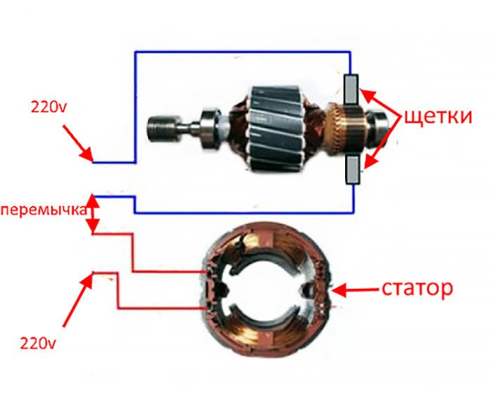 Схема подключения коллекторного электродвигателя на 220 Вольт