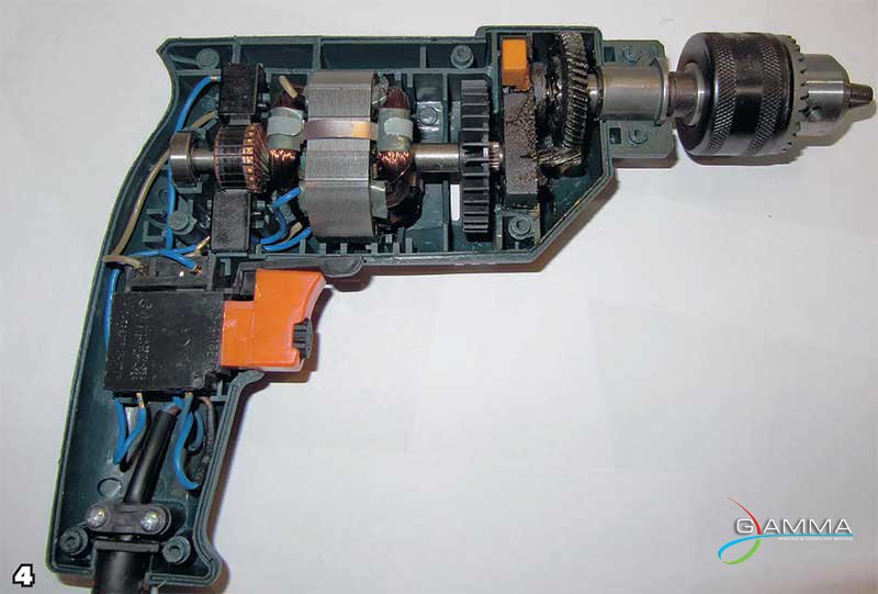 Основным механизмом безударной дрели, как и любого электроинструмента, является мотор или электродвигатель. Работающий мотор передает вращение посредством вала на редуктор, который снижает слишком высокую частоту вращения двигателя и увеличивает величину крутящего момента патрона.