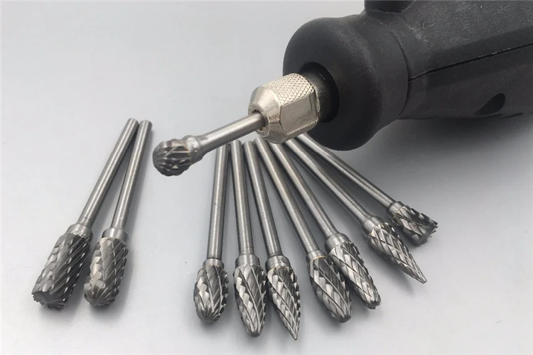 Наборы абразивных насадок обычно имеют в своём составе пять или шесть инструментов с отличающейся формой рабочей части. Хвостовик такой оснастки равен 2,3 мм.