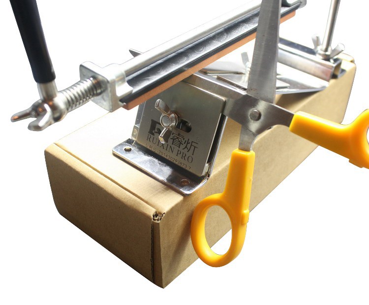 Процесс заточки выполняется с помощью заточного оборудования, изготовленнего на заказ специально для заточки ножниц. Для придания остроты режущим поверхностям необходим абразив, то есть алмазная крошка или паста. Металлические диски с алмазным напылением, алмазные карандаши, надфили и японские водные камни позволяют добиться идеальной остроты при минимальном снятии металлического слоя.