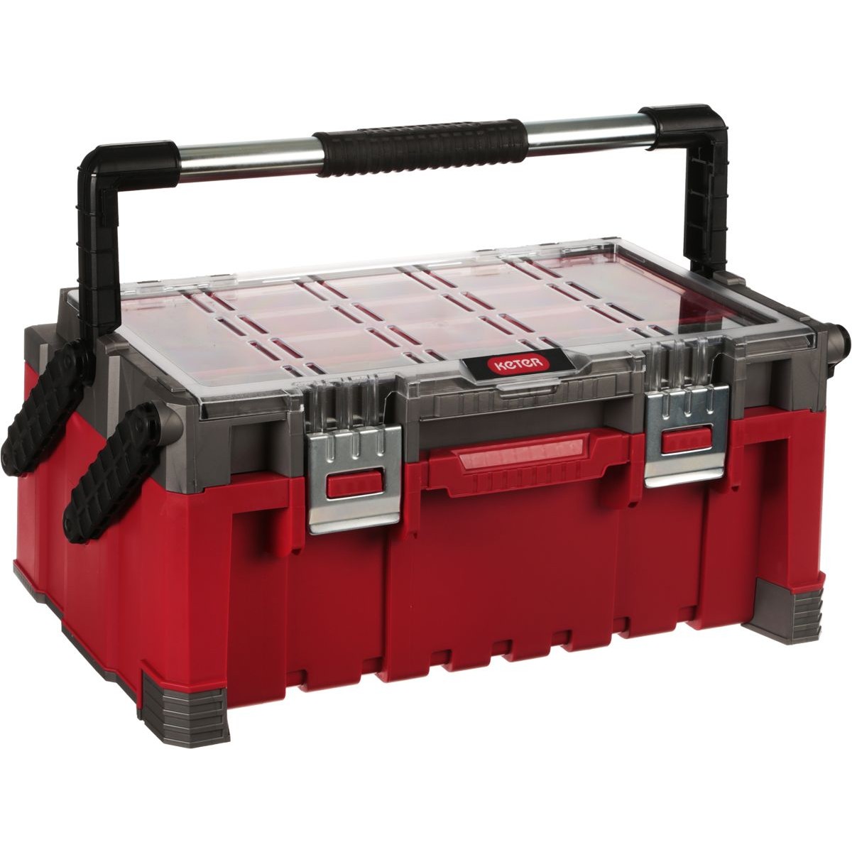 Эта превосходная система хранения имеет три ящика, верхнее отделение и большое нижнее отделение для доп. хранилище. Верхний сундук и средний ящик разделены на три части, что позволяет вам брать с собой только те инструменты, которые вам нужны. Изготовлен из литого под давлением пластика с металлическим каркасом для дополнительной прочности. Телескопическая ручка для переноски и большие полипропиленовые колеса делают этот ящик для инструментов по-настоящему портативным.
