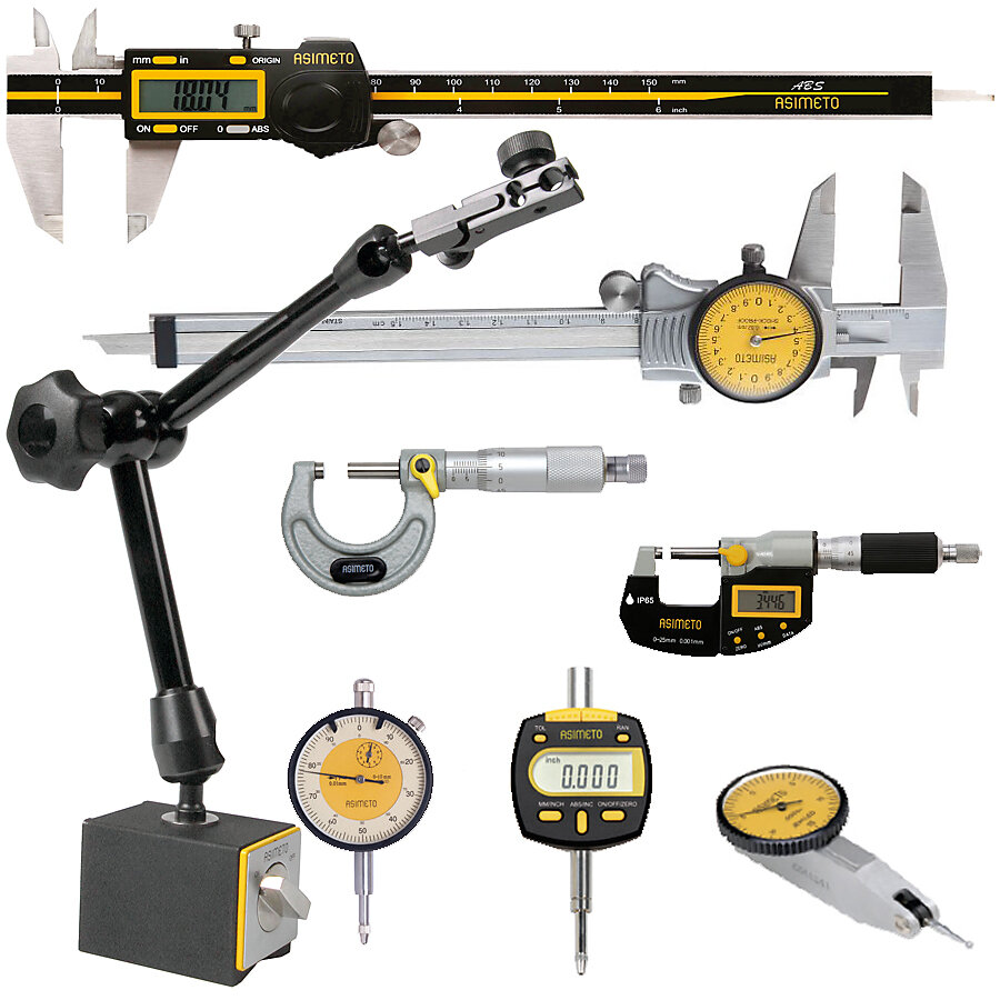 Контрольно-измерительные операции сводятся к измерению длин (наружные и внутренние диаметры, расстояния между различными точками и поверхностями) и углов. Для измерения длин служат линейки, рулетки, штангенциркули, глубиномеры, микрометры, щупы, измерительные плитки и индикаторы.