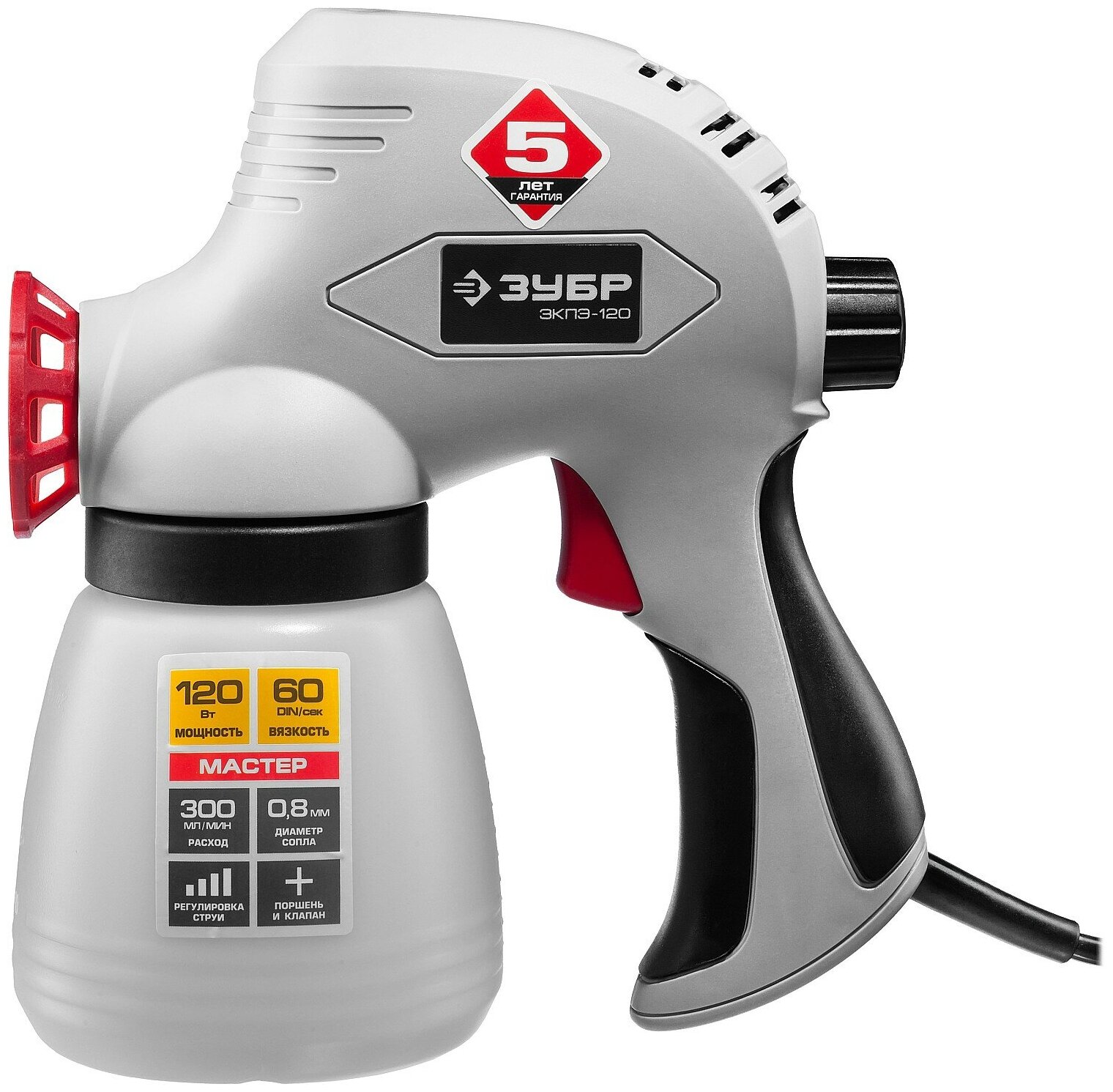 Электрический пистолет со встроенным мотором. Предназначен для работы с жидкостями, плотность которых выше 60 DIN. Густоту можно определить с помощью специального стакана, имеющегося в комплекте. Резервуар нижний, его объем равен 0.8 литра. А также в комплекте имеются два распылительных сопла размером – 1.8 и 2.6 миллиметра. Размер струи и сила напора могут регулироваться.