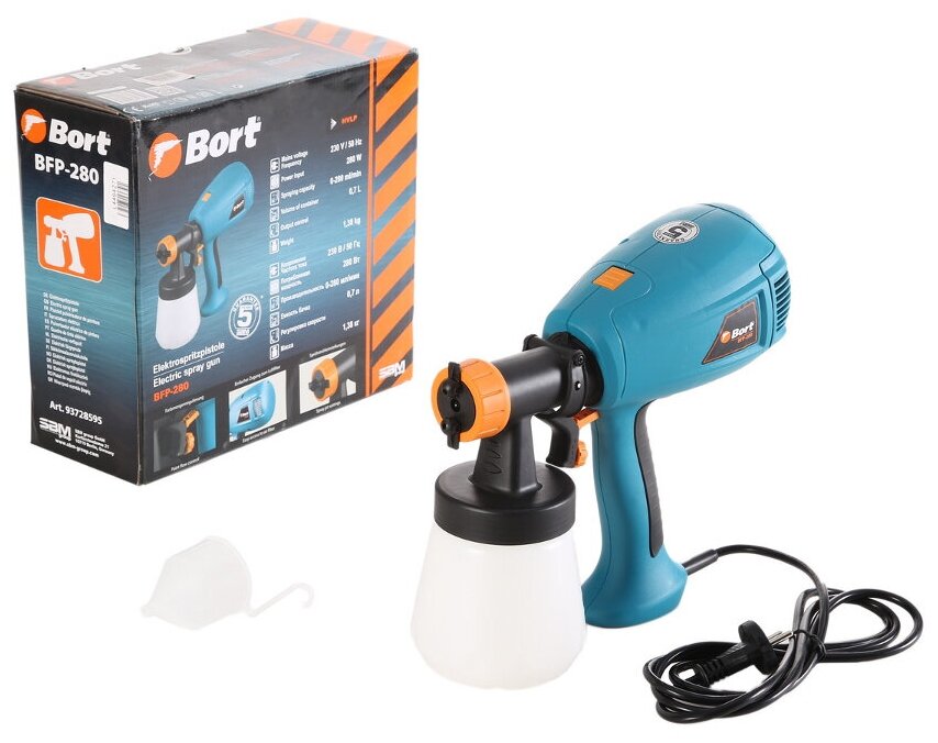 - В комплект входит]: 1 распылительная машина мощностью 800 Вт, 1 контейнер объемом 1300 мл, 3 пластиковых сопла (1,0 мм, 1,8 мм, 2,6 мм), 1 чистящая щетка, 1 чистящая игла, 3 уплотнения, 1 крышка, 1 мерный стакан, 1 кабель 3 м / 9,84 фута, 1 шланг 2,5 м, 1 плечевой ремень 1,4 м. Если у Вас возникли вопросы, свяжитесь с нами, мы всегда к Вашим услугам