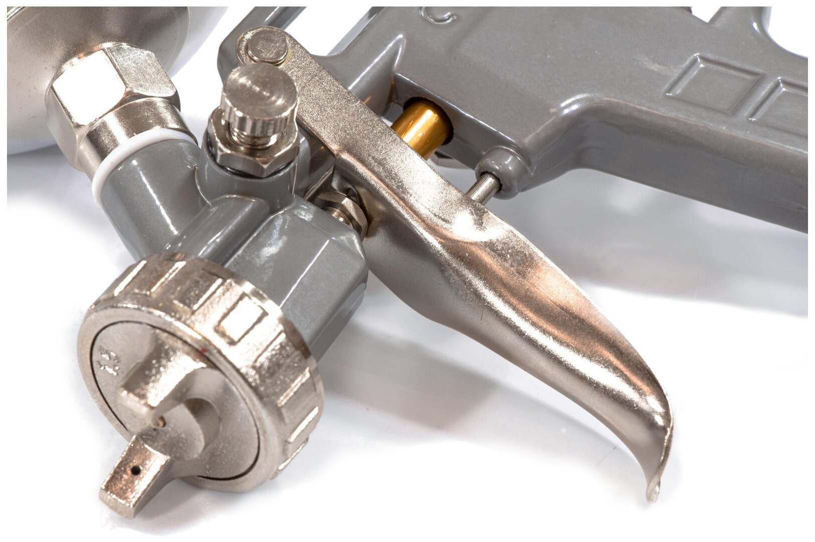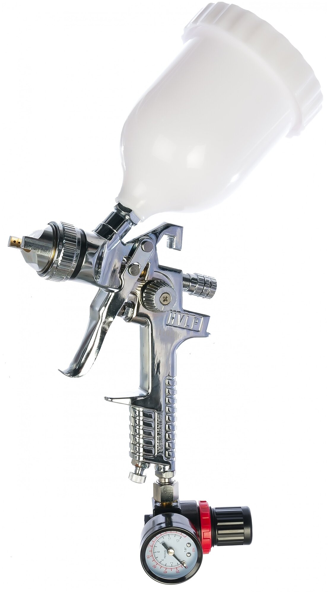 Число с приставкой «bar» или «атм», часто указывают на упаковках инструмента, а иногда, даже на корпусе пистолета.Настройка с манометромСамый точный и рекомендуемый способ настройки входного давления краскопульта. Требует наличия цифрового или стрелочного манометра, подключенного между шлангом и рукояткой пистолета. Некоторые современные модели оснащены встроенным электронным манометром и подключения дополнительного оборудования не требуют. Для большинства же инструментов, особенно бюджетного класса, данным измерительным прибором обзавестись стоит. Выполнить настройку подаваемого воздуха, можно достаточно просто, следуя простым шагам представленной ниже инструкции.