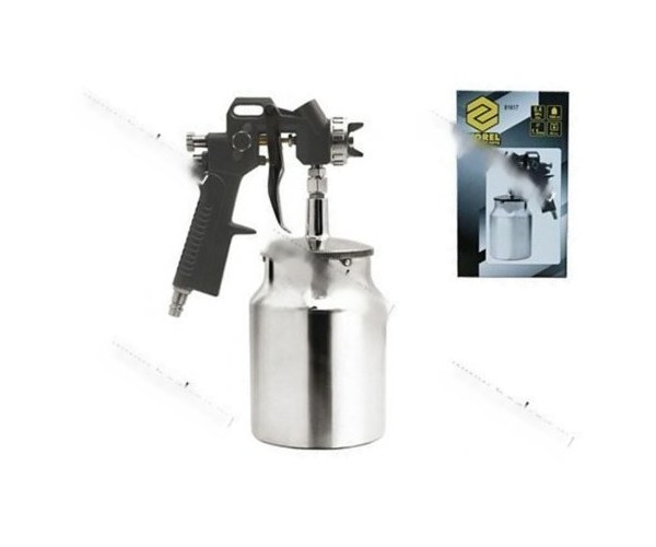 - с нижним бачком, когда емкость крепится снизу, раствор при этом нагнетается в сопло с помощью сжатого воздуха.