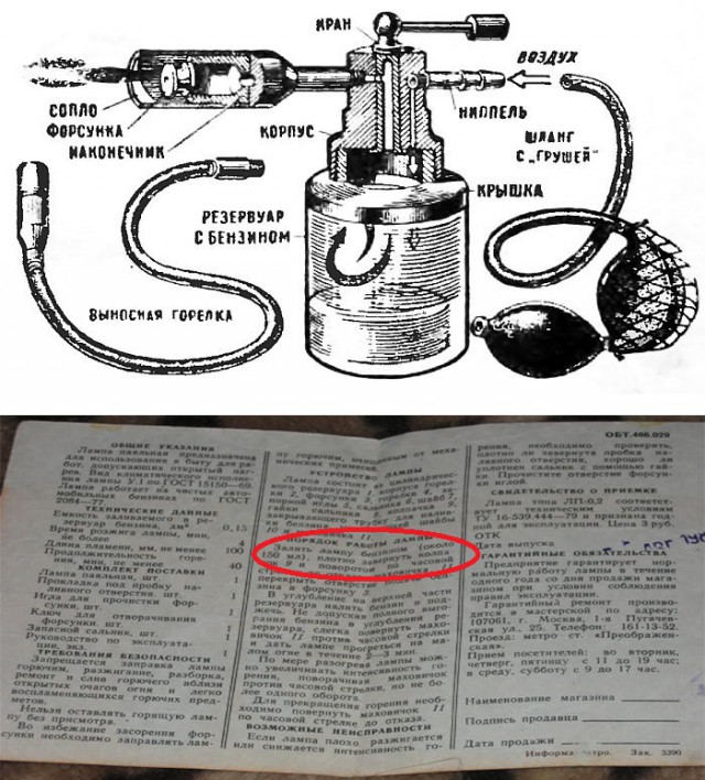 — не отвертывать воздушный винт и наливную пробку, когда лампа горит или еще не остыла.