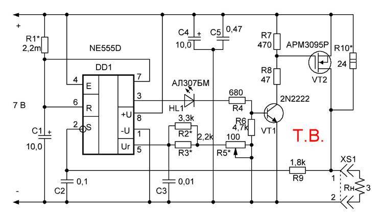 Выходное напряжение блока управления регулируется с помощью переменного резистора R2, который собственно и задает параметры мощности подключенного паяльника.