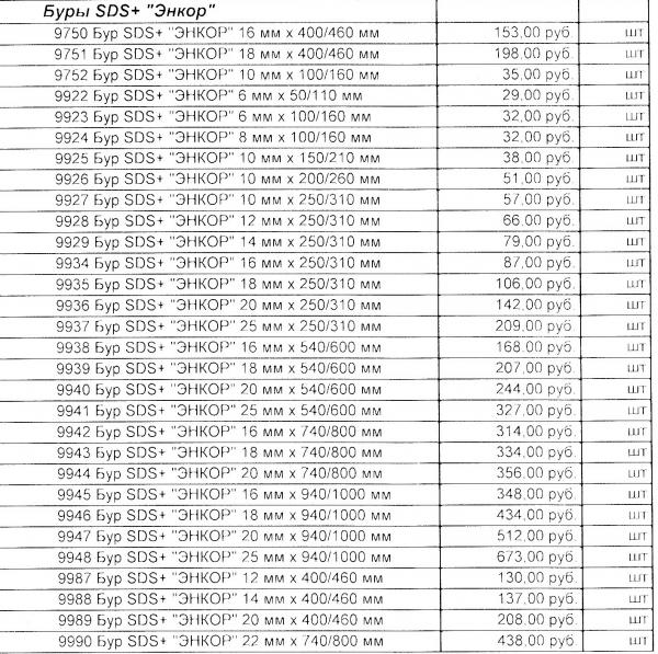 Требуется отметить, что самый длинный бур для перфораторов в соответствие с последней таблицей составляет 1320 мм.