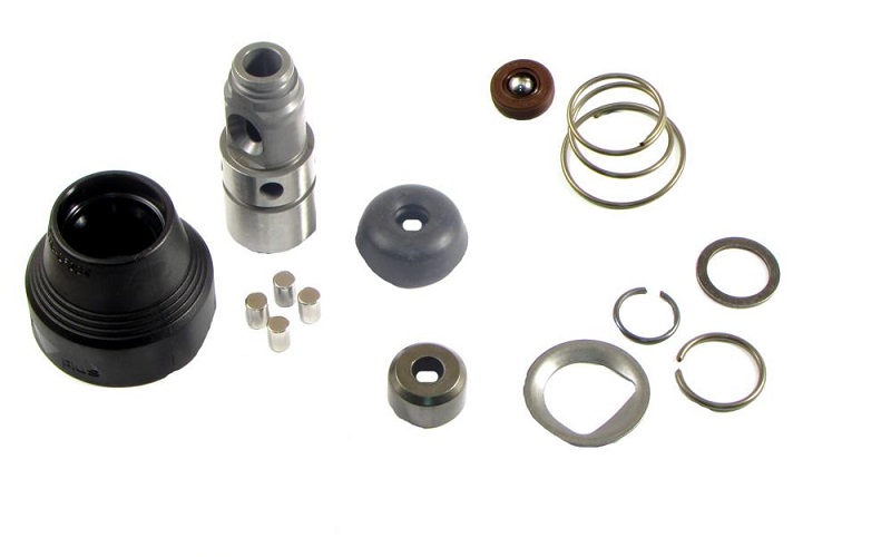 Далее идет хомут SDS, который состоит из трех частей: шайбы, шарика и пружины. СДС необходимо разбирать строго по правилам: в первую очередь достается шарик, затем шайба, и последней идет пружина. Важно соблюдать эту последовательность, чтобы не повредить внутреннюю конструкцию.