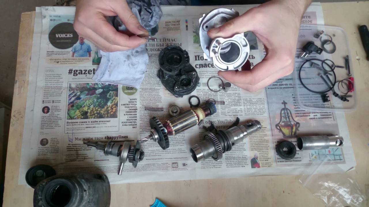 В ходе сборки корпус редуктора необходимо очистить керосином по другому бензином. Далее оболочку надевают на исходное место.
