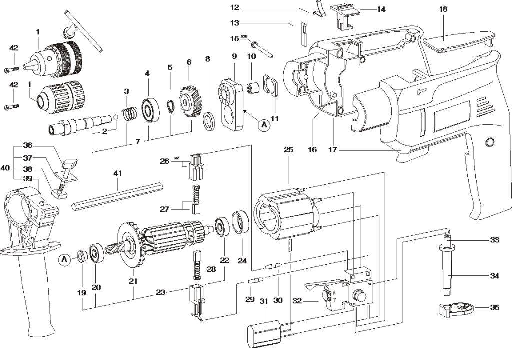 | Приспособления | дополнительная рукоятка, ограничитель глубины сверления, блокировка кнопки включения |