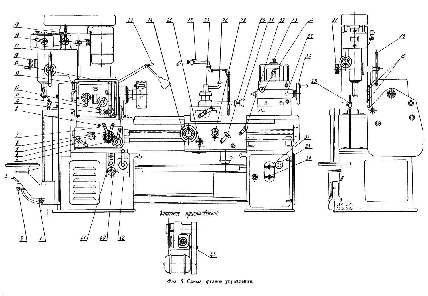 Расположение органов управления токарно-винторезным станком 1д95