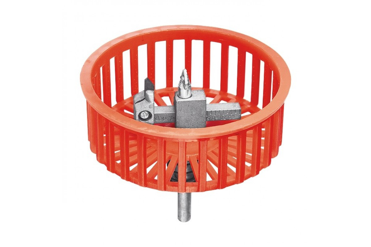 Положение каждого из резцов такой балеринки выставляется отдельно, при этом, конечно, их расстояние от оси центрального сверла должно быть одинаковым. - Трехрезцовая балеринка по кафелю и керамической плитке отличается самой сложной конструкцией. Основой такого инструмента является круглая платформа дискового типа, в специальных пазах которой и двигаются резцы. Точно выставлять положение резцов и, соответственно, получать отверстия требуемого диаметра позволяет специальная шкала, нанесенная на корпус платформы устройства в области ее пазов. Движение всех трех резцов такого устройства синхронизировано, что позволяет быстро, легко, а главное, точно выставлять положение каждого инструмента относительно оси центрального сверла.