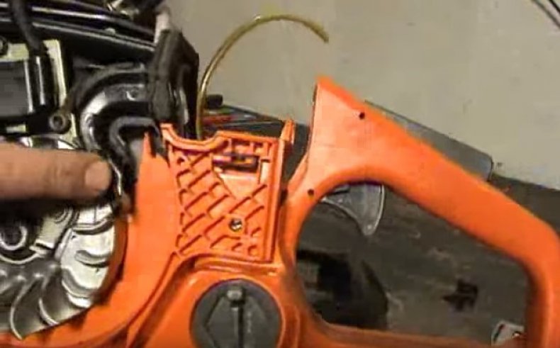- неисправности в кнопке управления двигателем, для проверки необходимо отсоединить провода от кнопки и попробовать запустить бензопилу Хускварна 240;