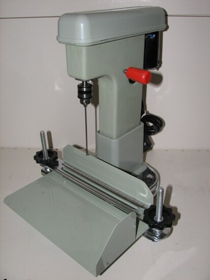 En konventionell borr kan också användas för att borra hål i enheten medan arkivering av handlear kommer att utföras med en zigenarnål och tråd.