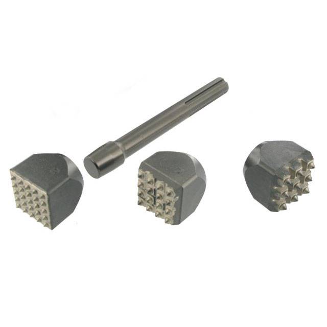 - Потренируйтесь перед тем, как приступить к чистовой обработке. Несмотря на кажущуюся простоту конструкции, работать с бучардами сложно. Кроме того, для каждой задачи необходимо точно подобрать тип используемых насадок.
