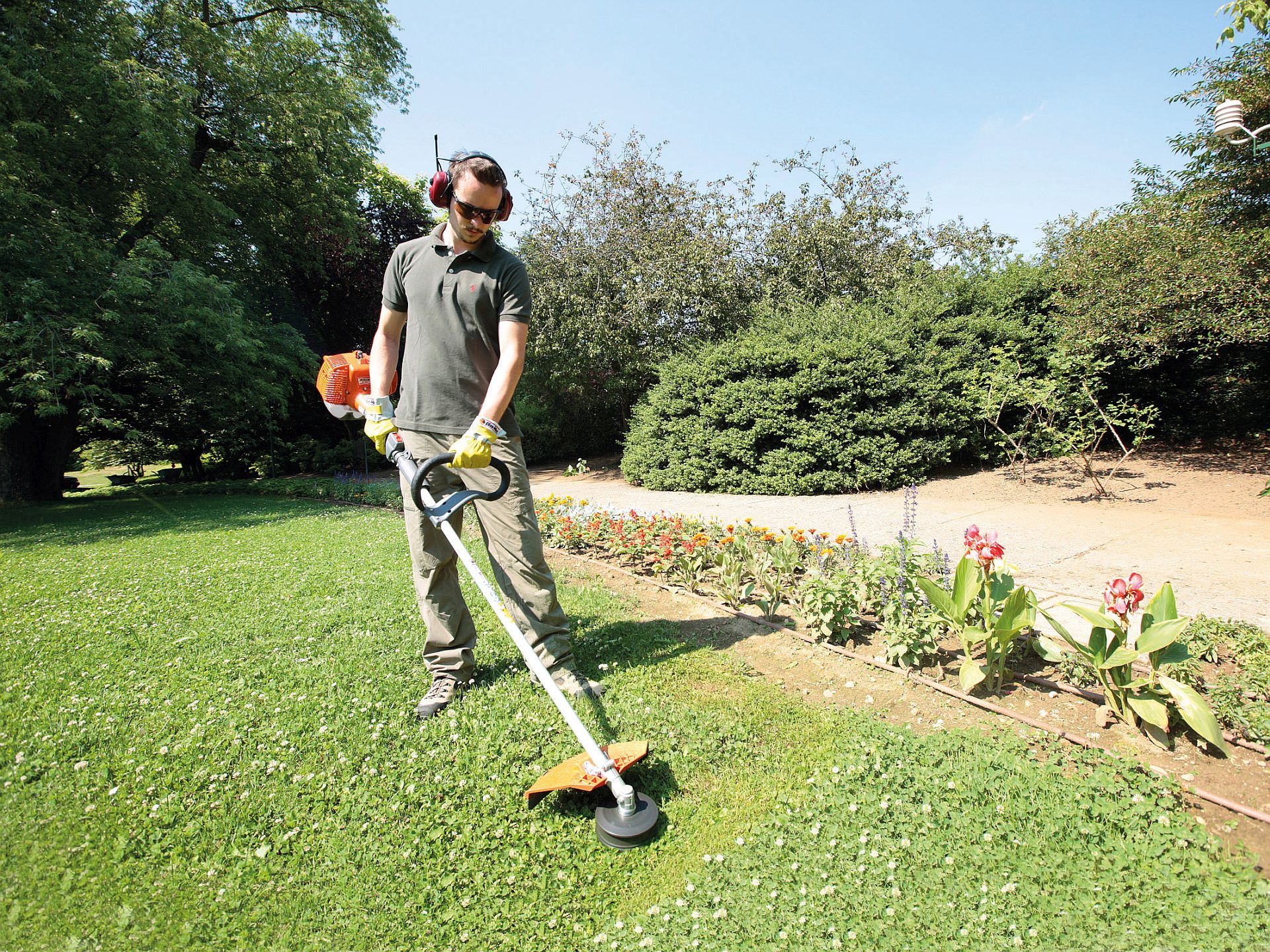 Аккумуляторный триммер Stihl FSA90R для обрезки краев газона.
