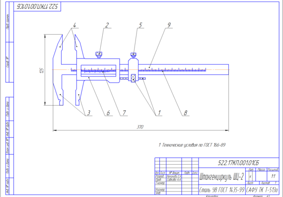 Материальное оснащение: Инструктивные указания и пояснения к заданию, штангенциркули ШЦ-I-125—0,1 (ГОСТ 166—89), ШЦ-II-250—0,05(ГОСТ 166—89), деталь для измерения, эскиз или чертеж детали, ручка, карандаш, чертежные инструменты