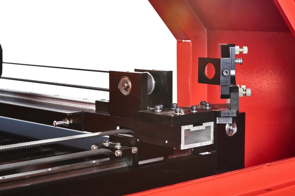 Рама очень жесткая, благодаря чему на станках данной серии возможно установить фрезерную головку и использовать его не только как лазерный станок, но и для фрезерной обработки.