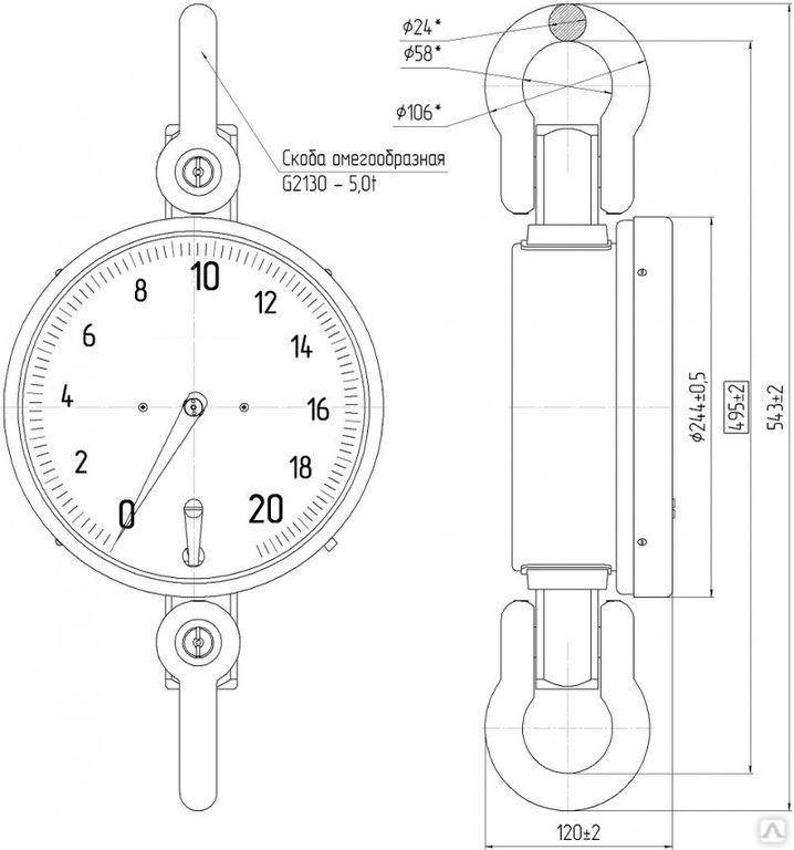 Динамометр состоит из датчика силоизмерительного тензорезисторного с силовводящими элементами, вторичного измерительного преобразователя с цифровым отсчетным устройством и соединительного кабеля.