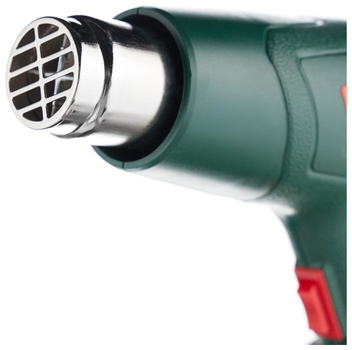 Производителем предусмотрено две ступени рабочей температуры: 375/495°С, поток воздуха на первой ступени 350 л/мин, на второй – 500 л/мин. Потребляемая мощность оптимальна – 1,8 кВт, чего достаточно для разогрева спирали до 495°С. Длина сетевого провода небольшая – всего 1,8 м. В комплекте с феном идет 2 насадки.
