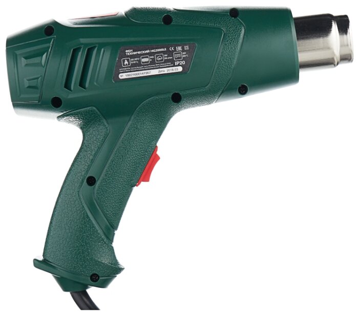 У основания провода есть небольшая петля-подвеска, ручка фена классическая, замкнутого вида, вес всего 1,1 кг. Легкий, удобный в работе инструмент с широким температурным диапазоном легко снимет пленку, наклейки или краску, деформирует пластик или древесину. Модель собрала много положительных отзывов, чаще всего владельцы отмечают высокое качество сборки и стабильную, надежную работу.