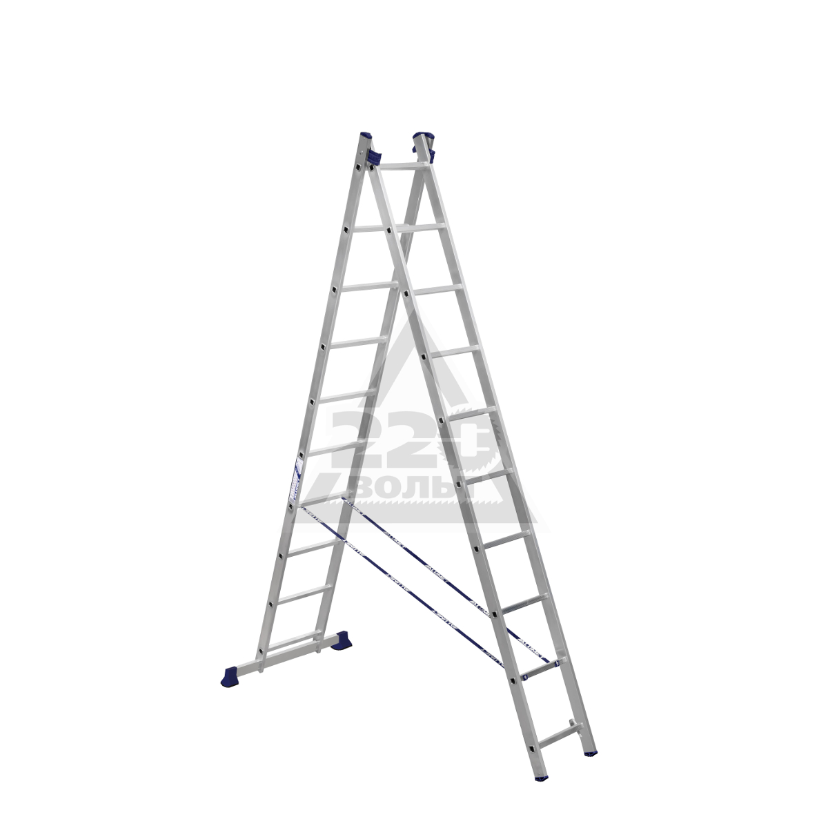 Двухсекционные. Универсальная конструкция, сочетающая в себе стремянку и приставную лестницу. Могут иметь высоту до семи с половиной метров. Количество ступеней: от шести до пятнадцати.
