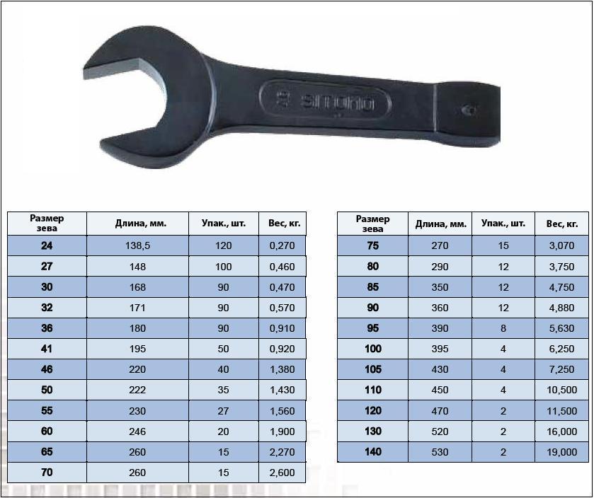 Размеры гаечных ключей также разные.