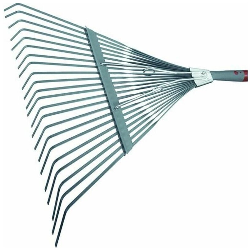 Зубья граблей имеют форму круга, а не треугольника, что придает ему большую ширину. Благодаря зубьям грабли эффективно собирают большое количество листьев. Кроме того, грабли имеют рукоятку из армированного стекловолокна с тройной конструкцией для долговечности, двухсторонние опорные выступы на зубьях для предотвращения поломки и угол наклона зубцов в 90 градусов для большей эффективности.