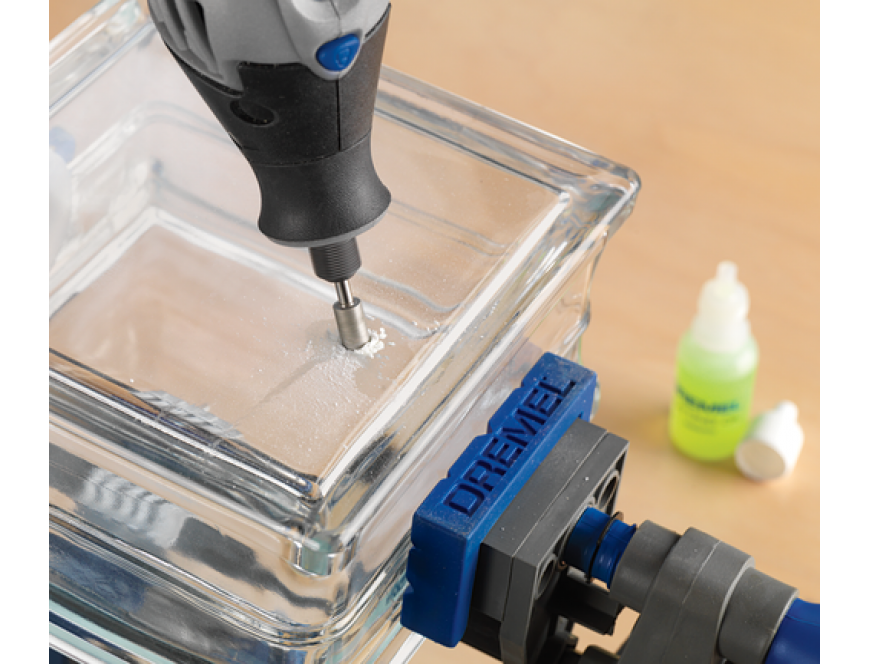 - Закрепите стеклянный предмет, который собираетесь просверливать.