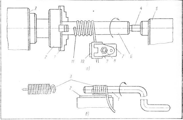 После этого берется оправка соответствующая внутреннему диаметру нестандартной пружины, которую нужно сделать, и на нее наматывается проволока вплотную виток к витку. Намотка делается внатяжку, чтобы заготовка получила правильную цилиндрическую форму.