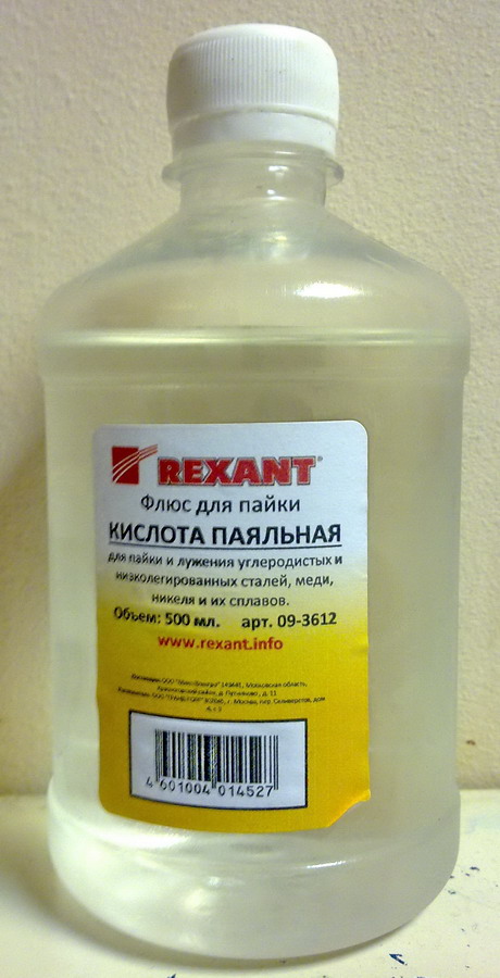 В качестве флюса при пайке используется два вида специально подготовленной кислоты: