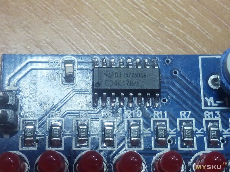 Видно, что шарики у верхнего резистора R4 лежат возле него кучкой – они просто слиплись, но не сплавились. Пайка нижнего резистора R5 получилась качественной, все шарики припоя в пасте слились вместе.