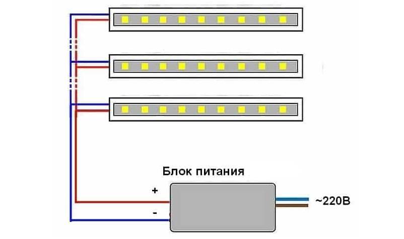 Способ 1: несколько светодиодных лент, подключенных параллельно к одному источнику питания