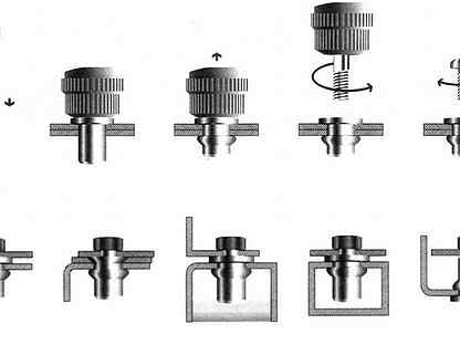 - Мы заранее готовим. отверстие для элемента. А после вставляем заклёпку при помощи зажимного механизма.