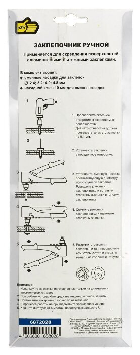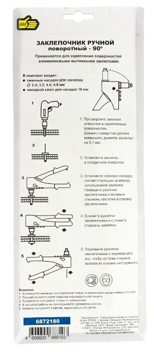 Если вы покупаете через интернет-магазин и нет возможности всё подробно посмотреть и потрогать, тогда обратите внимания на корпус заклепочника. В характеристика товара будет указан материал, из которого он изготовлен.