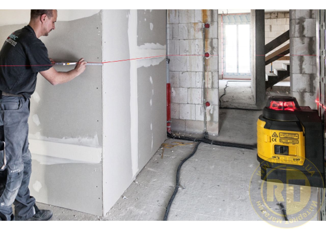 Имея лазерный уровень, можно за короткое время «перекроить» помещение. Чтобы разметить расположение перегородок, не придется брать стремянку или ползать по полу. Достаточно сделать проекцию лазерного луча в том месте, где будет находиться будущая перегородка.