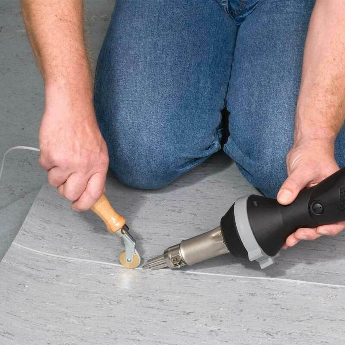 Технология сварки линолеума с помощью фена напоминает удаление старой лакокрасочной облицовки.