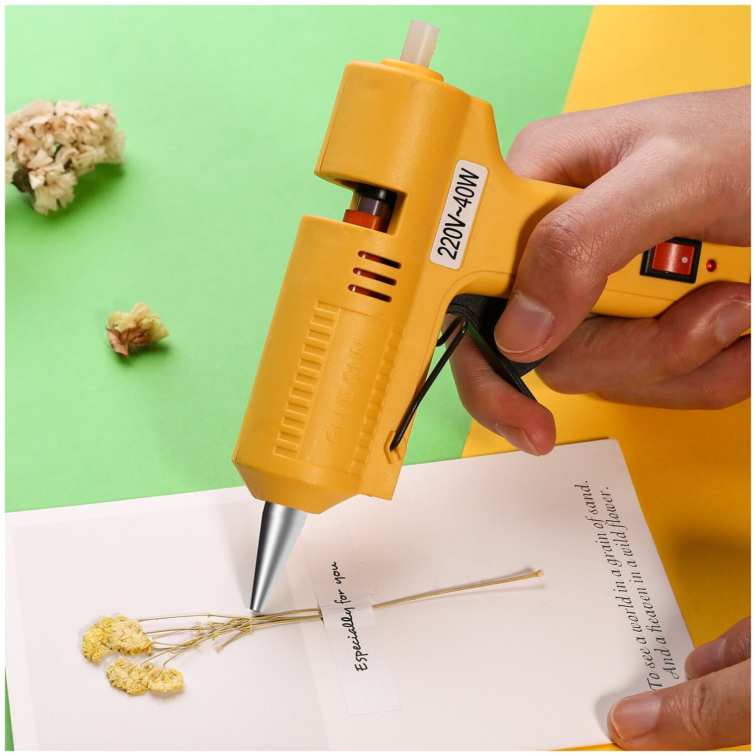 Комплект термоклеевого пистолета CCBetter – отличный продукт с надежно высокими характеристиками.Он отличается относительно быстрым нагревом от 3 до 5 минут и источником питания с кабелем питания 55 дюймов. Есть пластиковая крышка для предотвращения чрезмерного нагрева внешней поверхности клеевого пистолета и предохранительный выключатель питания. В комплекте вы также получаете встроенную металлическую подставку, чтобы горячая насадка не касалась ваших поверхностей, и светодиодный индикатор, указывающий, включен ли клеевой пистолет. Привод с триггерной подачей делает этот клеевой пистолет эффективным и простым.