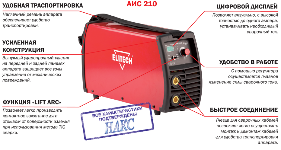 - форсаж дуги (Arc force) — отсутствие прилипания при сварке, что облегчает процесс работы и улучшает качество вертикальных швов;