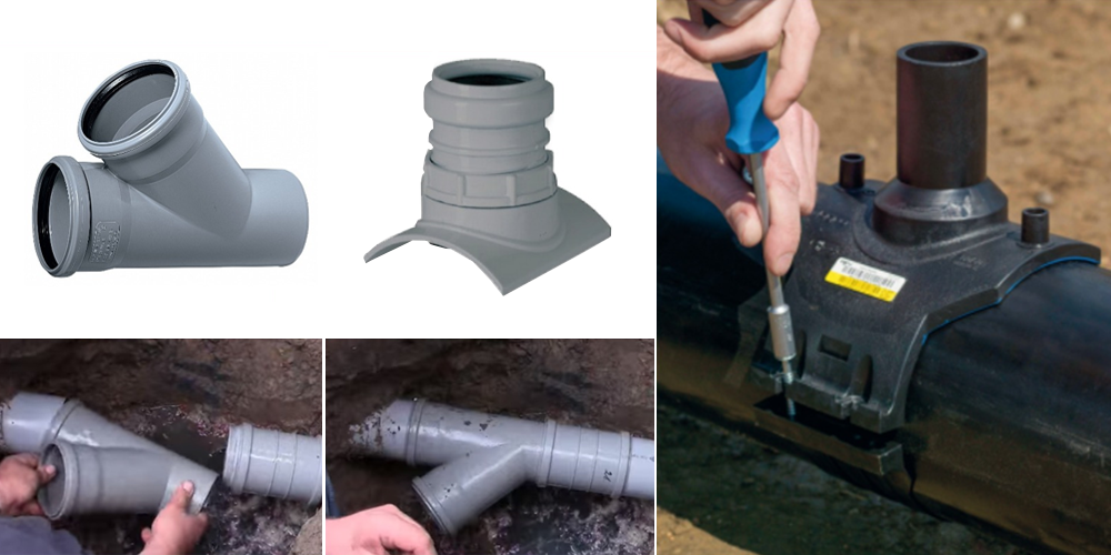 Полимерные материалы лучше всего обрабатывать при помощи электросварного разборного хомута. Две части такой конструкции монтируются четко на месте врезки, затем припаиваются к трубе. Подобное соединение обладает повышенной прочностью и абсолютной герметичностью.