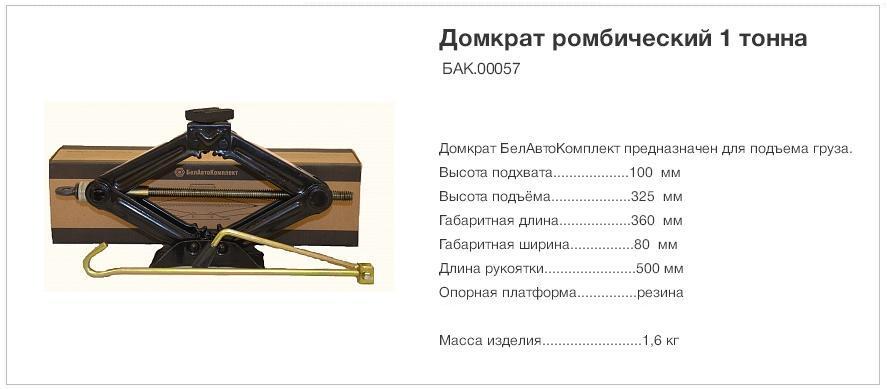 Тем не менее самые популярные — это ромбические домкраты, ведь подавляющее большинство автомашин российского производства оснащаются именно ими. Если нужно купить новое устройство, узнайте массу своего авто и подберите домкрат соответствующей грузоподъемности.