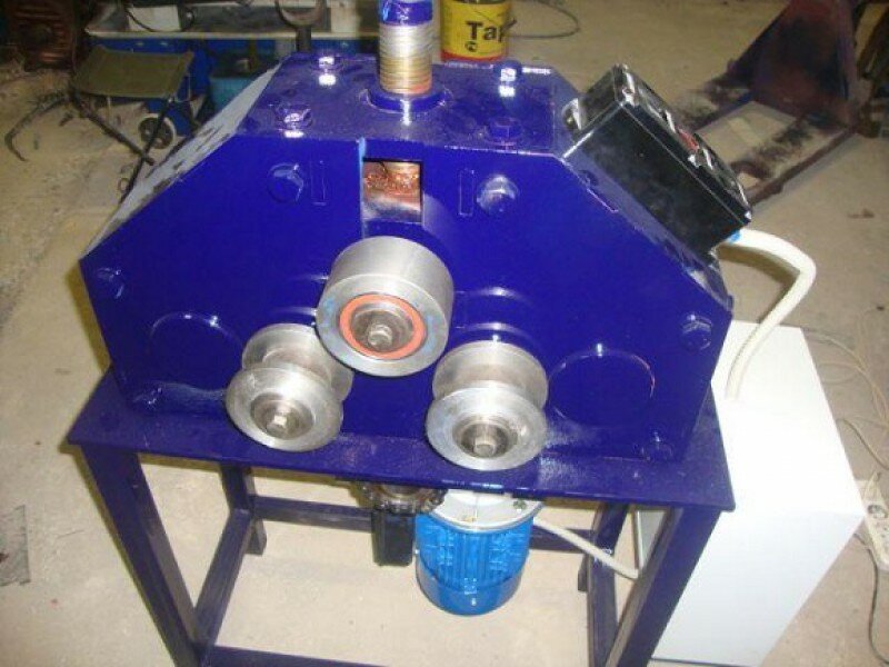 Самодельный трубогиб работает по как и ручной аппарат, только вся работа осуществляется при помощи электропривода.