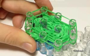 Для того чтобы сплести браслет, стоит воспользоваться станком. Наберите две пары на столбике по 7 резинок на каждый. Перемещайте их с помощью крючка по очереди на один. Когда одна фигурка будет готова, можно приступить к следующей. В результате простых действий будет получен стильный браслет.